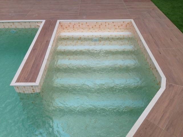 Cada vez está más de moda combinar el fondo y las paredes de la piscina con distintos colores, sean lisos o estampados. Esto permite dar un toque personal a la piscina, más original y exclusivo.