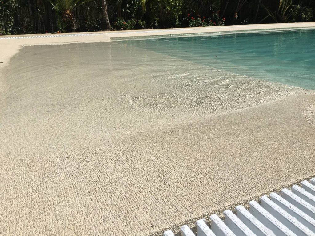 Esta piscina desbordante con estampado de relieve Tahiti muestra claramente el resultado que podrías tener si renuevas tu piscina con este diseño. Es perfecto para piscinas familiares, donde gracias al relieve, los niños no se pueden resbalar, y por su tono claro es agradable para mayores y sufrido para los niños.